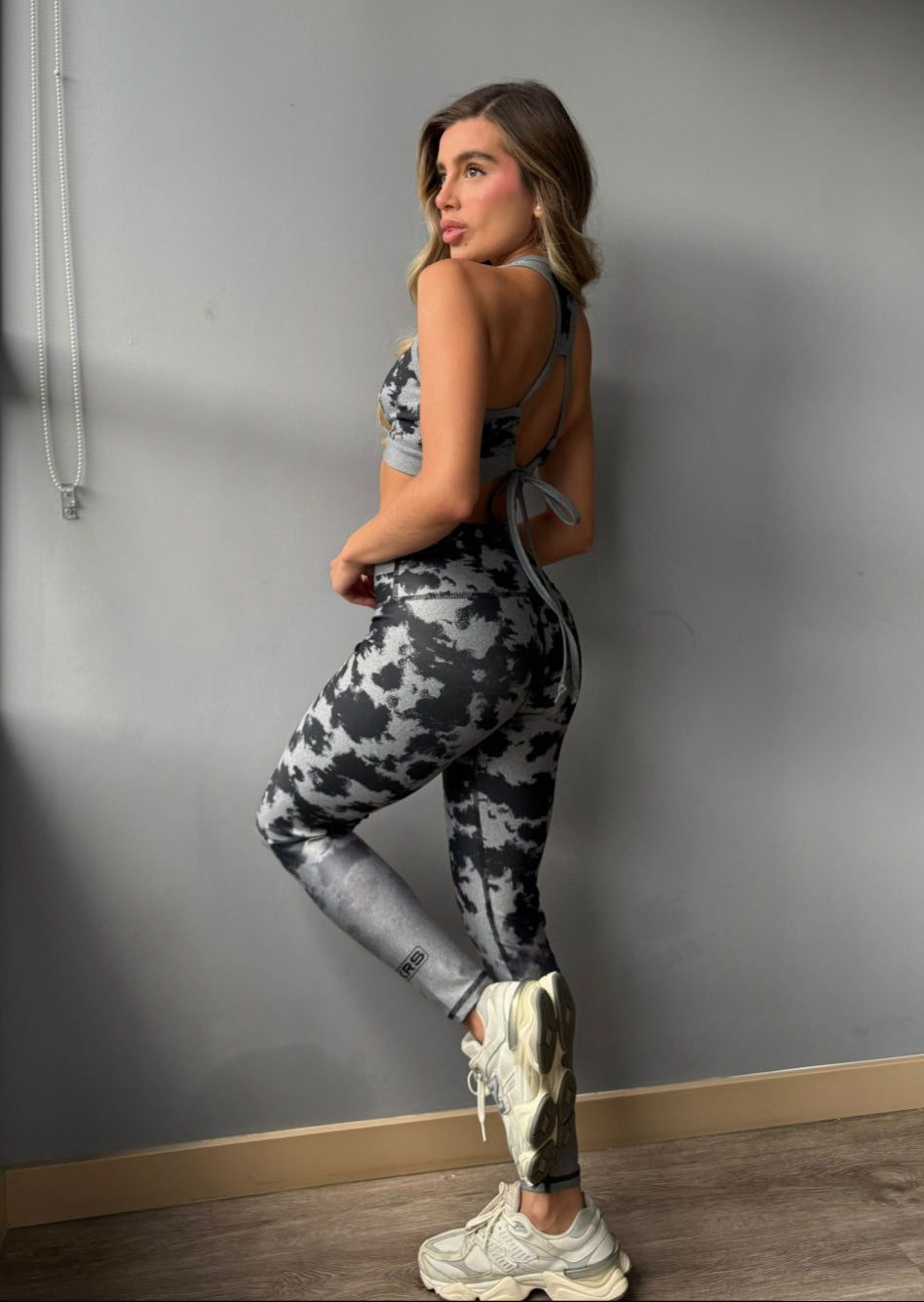 Conjunto sublimado gris camuflado + crop top para Mujer