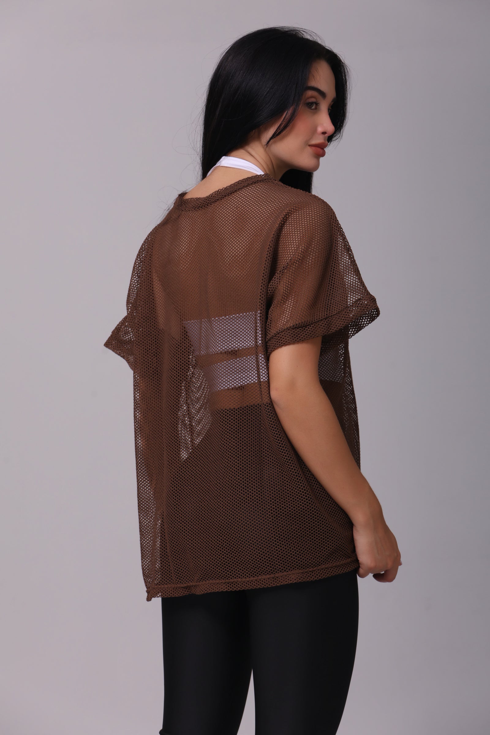 Blusón de malla talla única ligera y elástica, hecha de 80% poliéster y 20% spandex. Su diseño de malla la hace perfecta para crear looks frescos y modernos. Ideal para usar con un top o crop top, ofrece comodidad y estilo para cualquier ocasión. Disponible en varios colores.